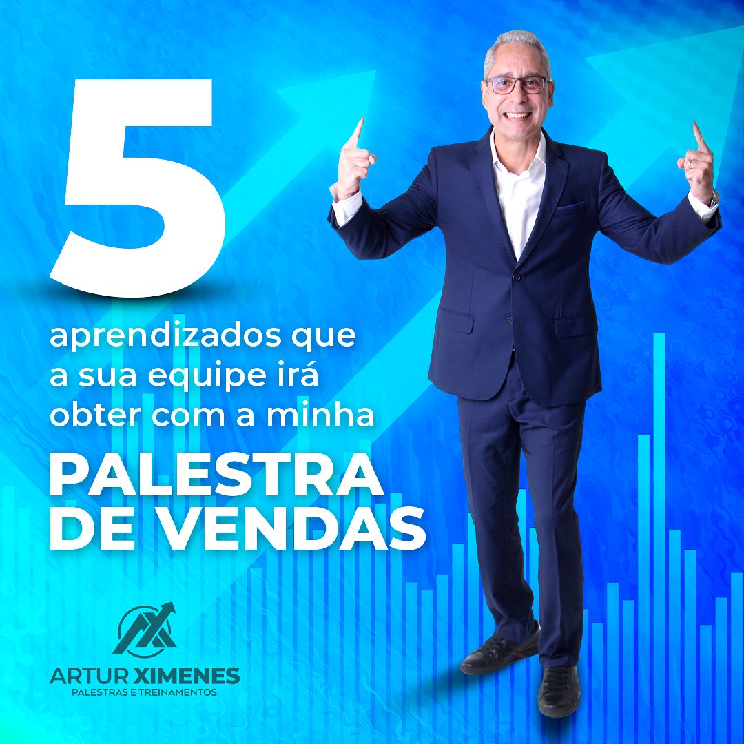 ATUALIZAR + CONCIENTIZAR + ALINHAR OBJETIVOS + PROVOCAR + ENGAJAR + COMPROMETER + SUPERAR METAS e MOTIVAR EQUIPES de atendimento e vendas, é a especialidade de Artur Ximenes, com trabalhos 100% personalizados, customizados e práticos.